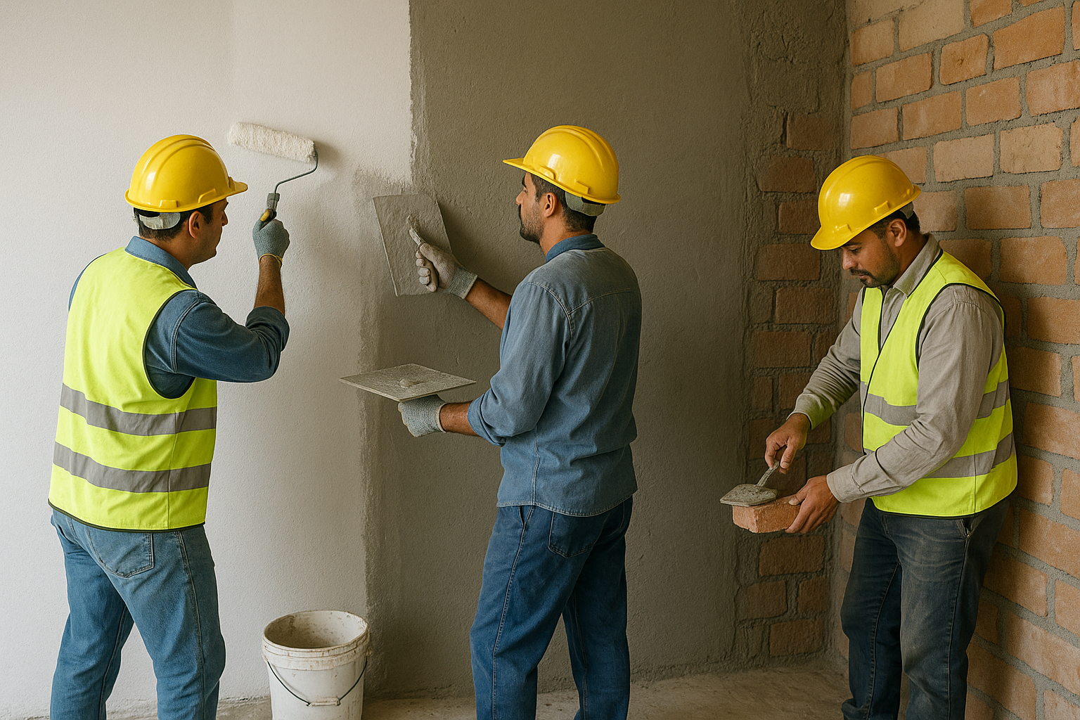 • أعمال مدنية احترافية تشمل الهيكلية، القواطع، اللياسة، وأعمال التشطيبات